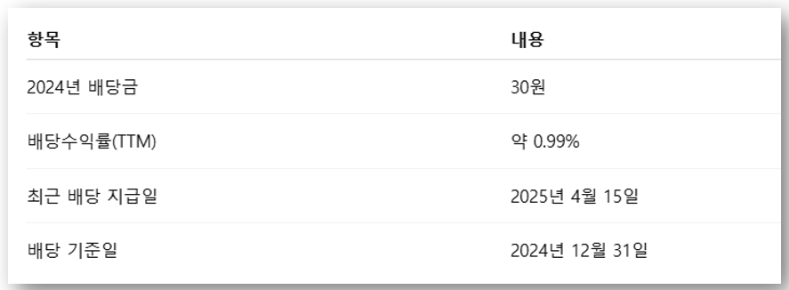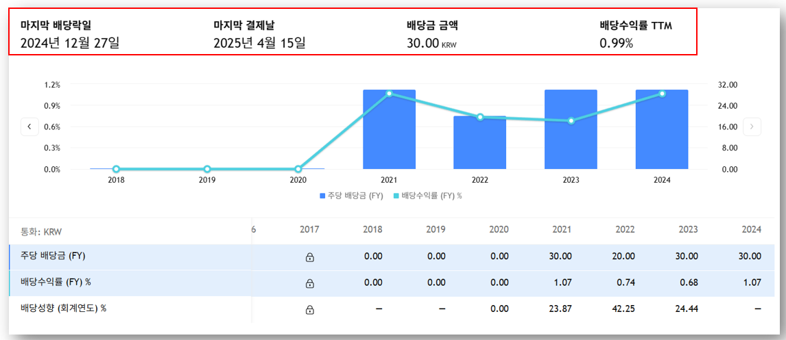 하림은 2021년부터 꾸준히 연간 배당을 지급해오고 있으며, 2024년에도 30원 배당을 유지했습니다. 다만 배당수익률은 낮은 편이라 배당보다는 시세차익 중심 투자자에게 적합한 종목으로 보입니다.