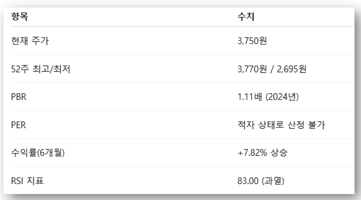 - 장중 3,750원까지 기록 (2025년 5월 19일)