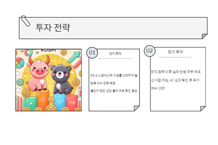 "BTS의 글로벌 투어 발표와 AI·게임 사업 확장으로 주가 상승 가능성 높다."