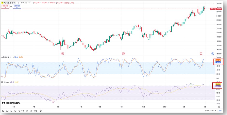 👉 단기적 조정 가능성을 열어두되, 250,000원~254,500원 지지선에서 반등 여부를 확인하는 것이 중요