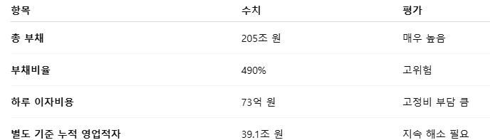 실적이 좋아도, 부채 구조와 고정비 부담이 상당하다는 점은 리스크 요소입니다.