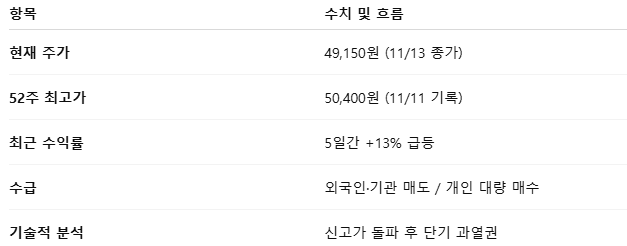 다만, 과열 신호가 누적되고 있어 단기 급등 피로감 주의 필요.