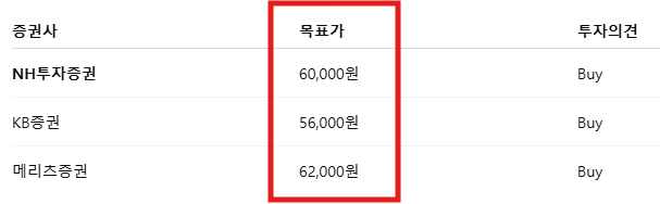 • 평균 목표가: 약 58,000원