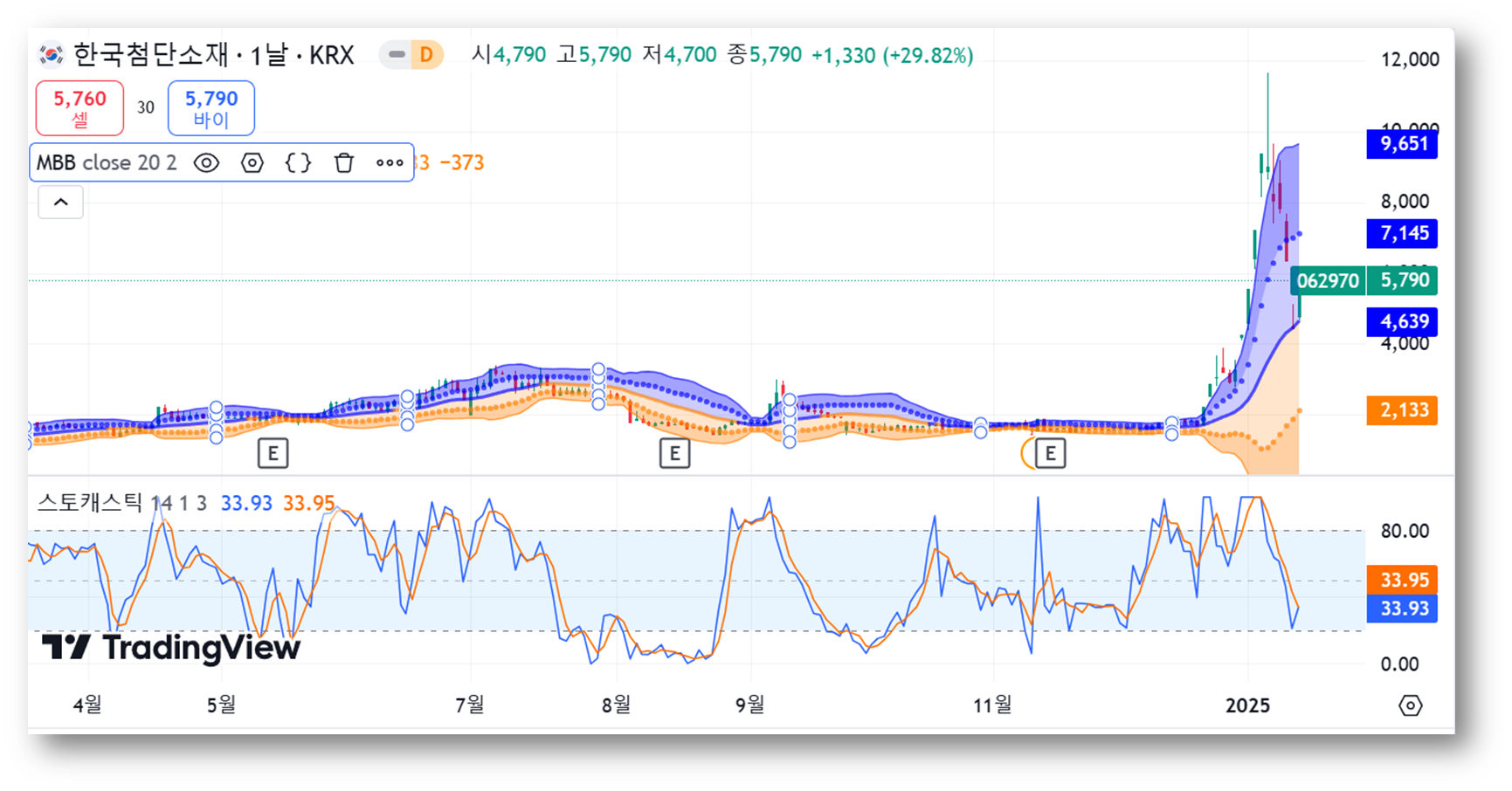 2)볼린저밴드/ 스토캐스틱 분석