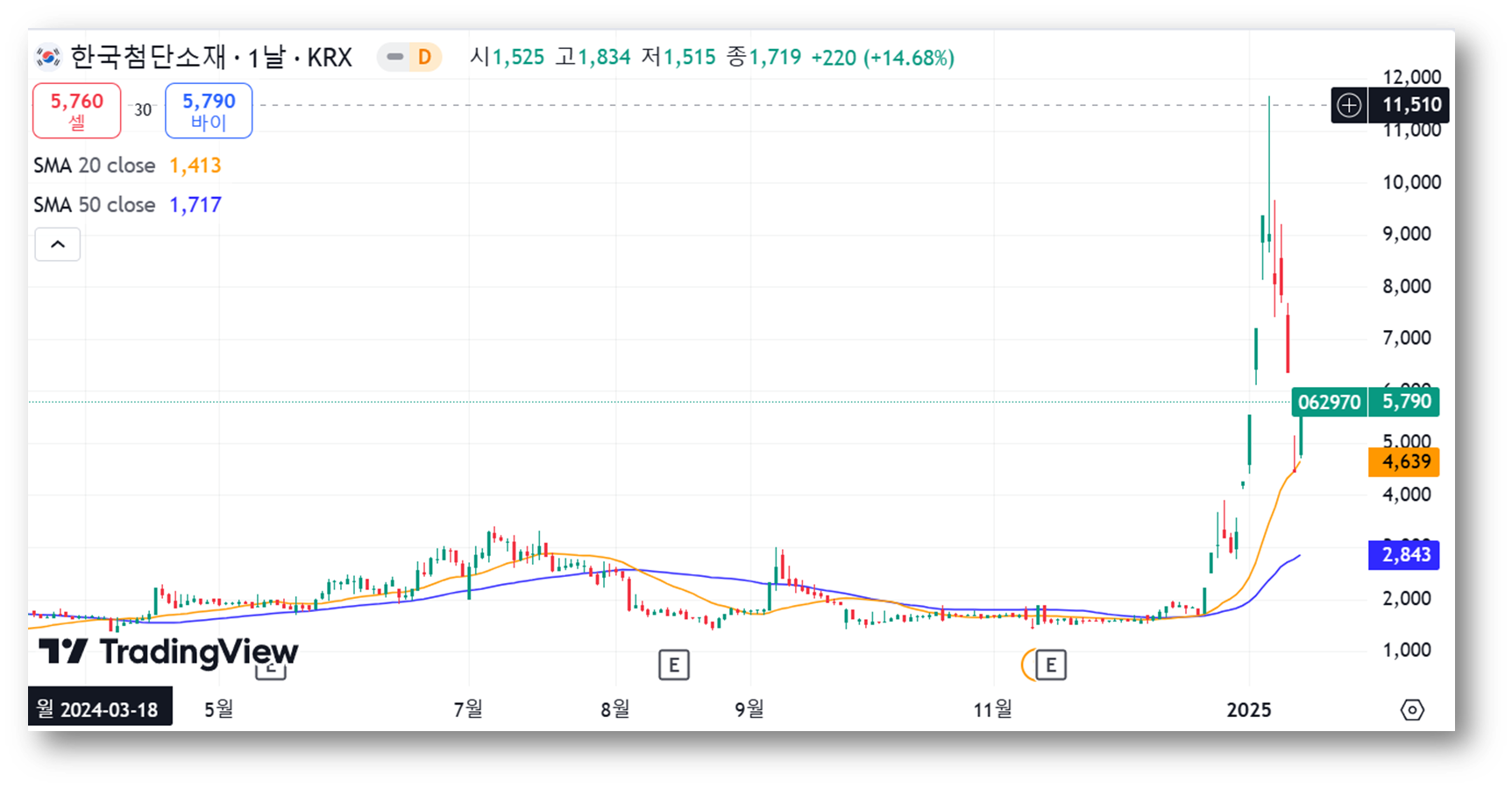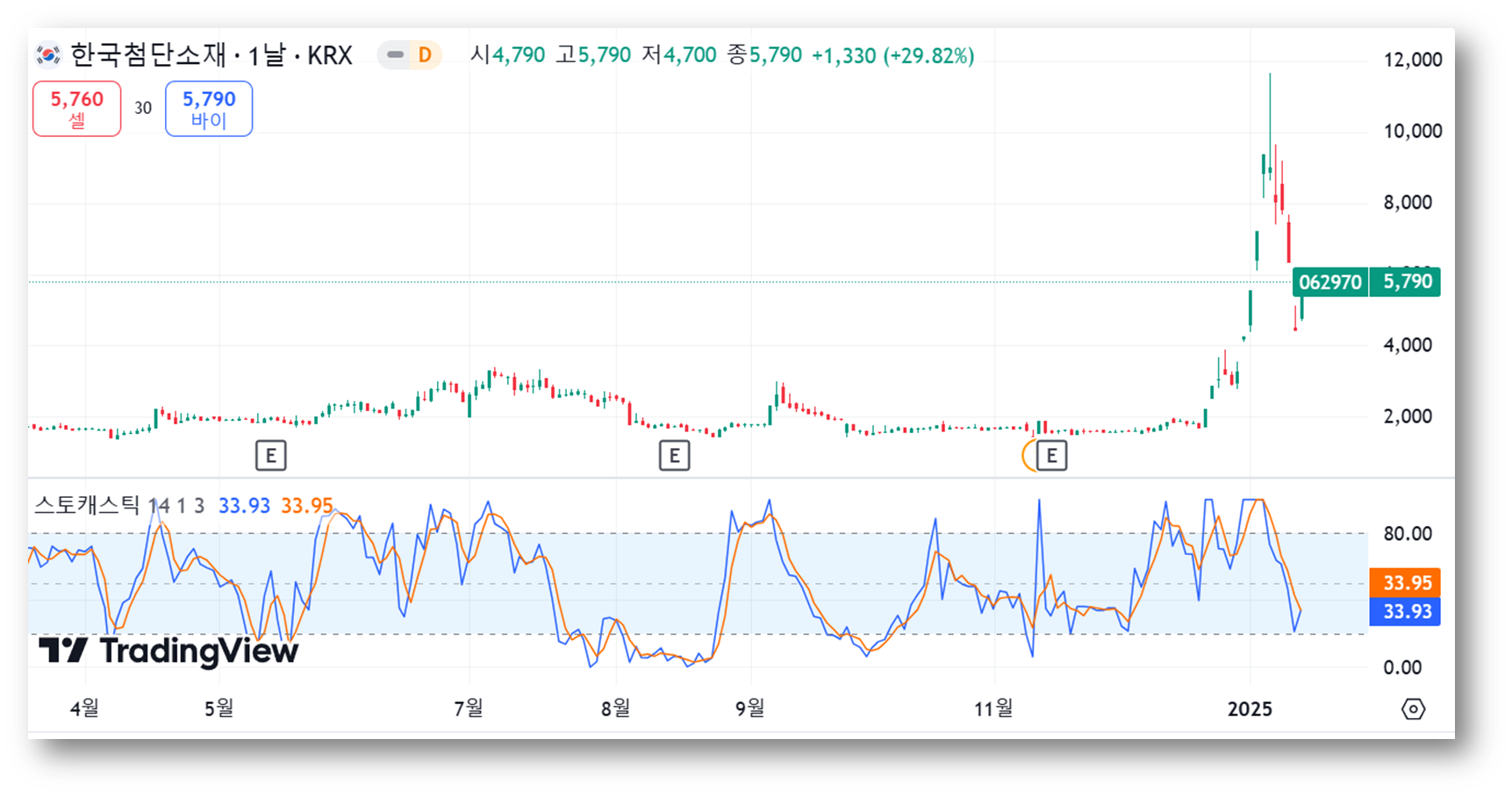 👉주가 상승률이 매우 높았는데요, 투자자들의 관심 증가 및 성장 기대가 반영되었기 때문으로 보입니다. 변동성이 큰 만큼 상승세가 지속될지 추가 분석이 필요해보입니다.