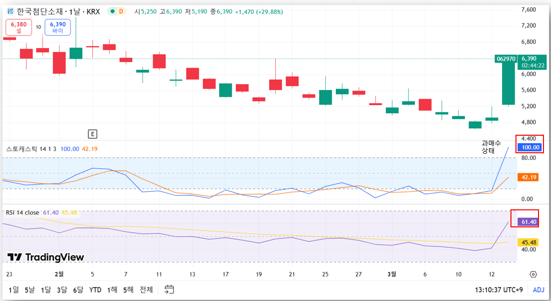 • RSI(상대강도지수) 61.40 → 상승세 유지