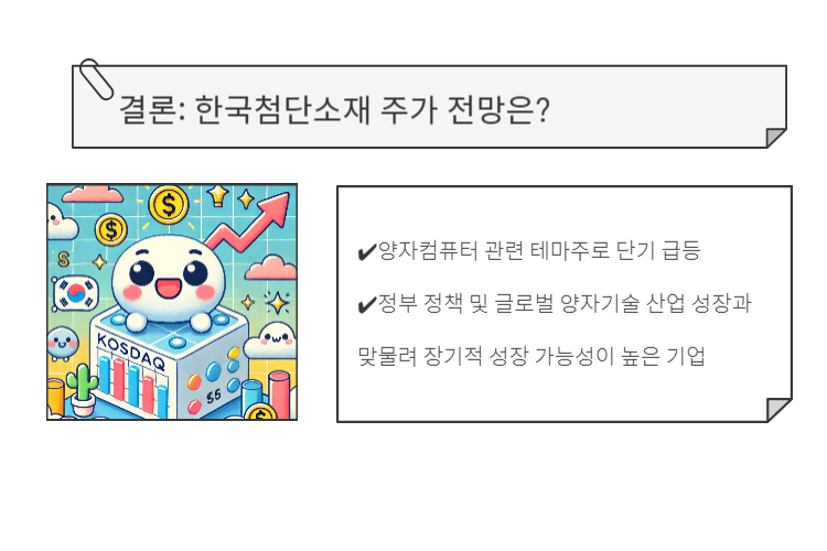 한국첨단소재는 양자컴퓨터 관련 테마주로 부각되면서 단기 급등하였으며, 정부 정책 및 글로벌 양자기술 산업 성장과 맞물려 장기적 성장 가능성이 높은 기업입니다.