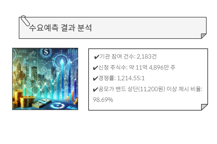 - 공모가 밴드 상단(11,200원) 이상 제시 비율: 98.69%