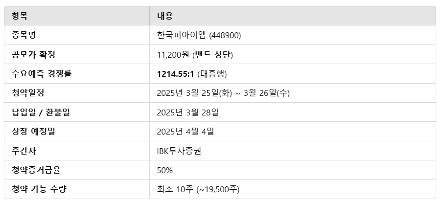 1. 한국피아이엠 공모주 핵심 요약