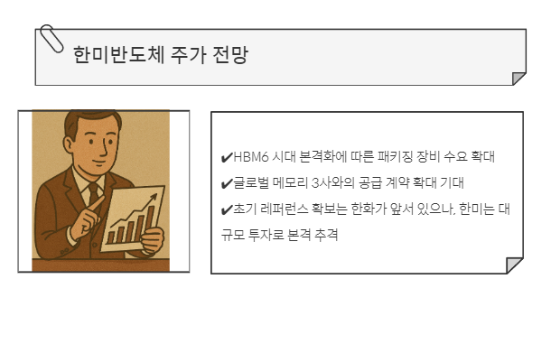 👉 업계에서는 HBM6 양산 시점(2026년 전후)부터 한미반도체가 다시 한번 성장 탄력을 받을 것으로 전망합니다.