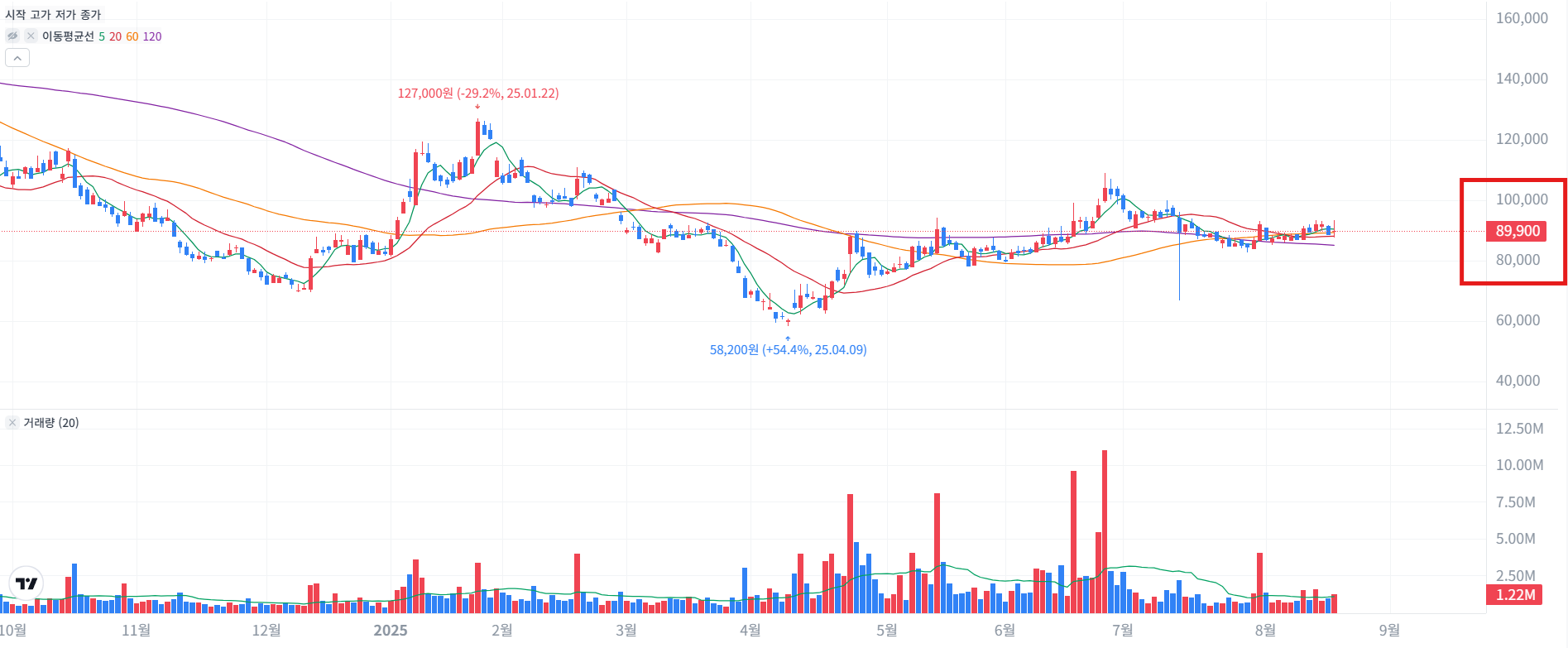 - 2025년 8월 19일 종가: 89,900원 (+1.23%)