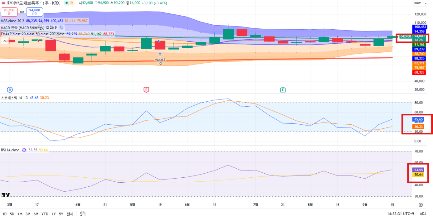 - RSI: 62.88, 스토캐스틱: 93.33 / 86.24 → 과매수 영역 진입