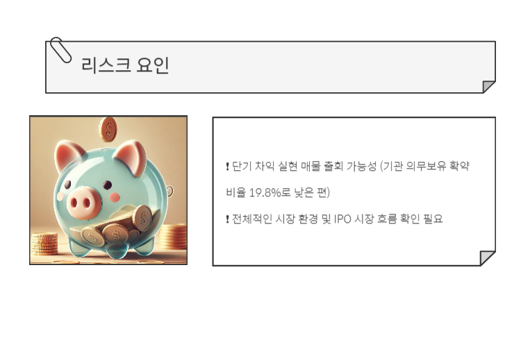 ❗ 단기 차익 실현 매물 출회 가능성 (기관 의무보유 확약 비율 19.8%로 낮은 편)