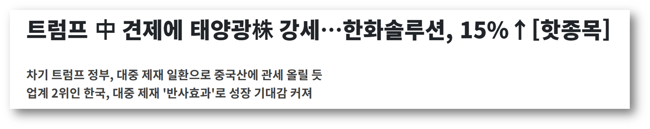 미국 트럼프 행정부가 중국산 태양광 제품에 대한 관세를 현행 50%에서 60%로 인상할 가능성과, 투자세액공제(ITC) 기간 단축 등 관세 장벽 강화 정책이 발표될 가능성이 제기되면서 태양광 관련 기업들의 주가가 상승한 것으로 분석되고 있습니다.