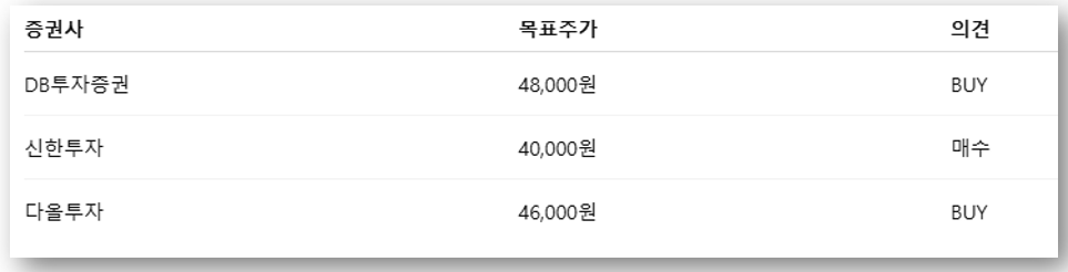 👉 평균 목표주가: 44,625원