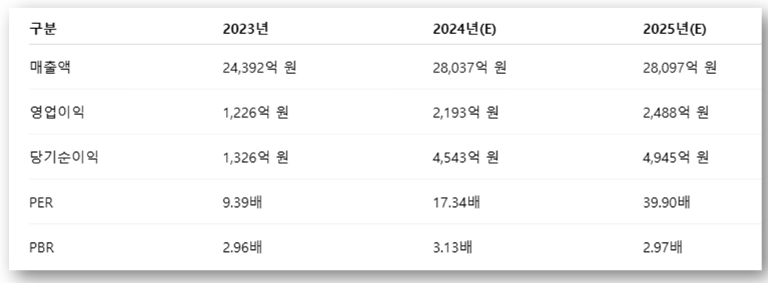 ※ 2024년 실적은 PER 17배 수준으로 저평가 구간으로 평가됨.
