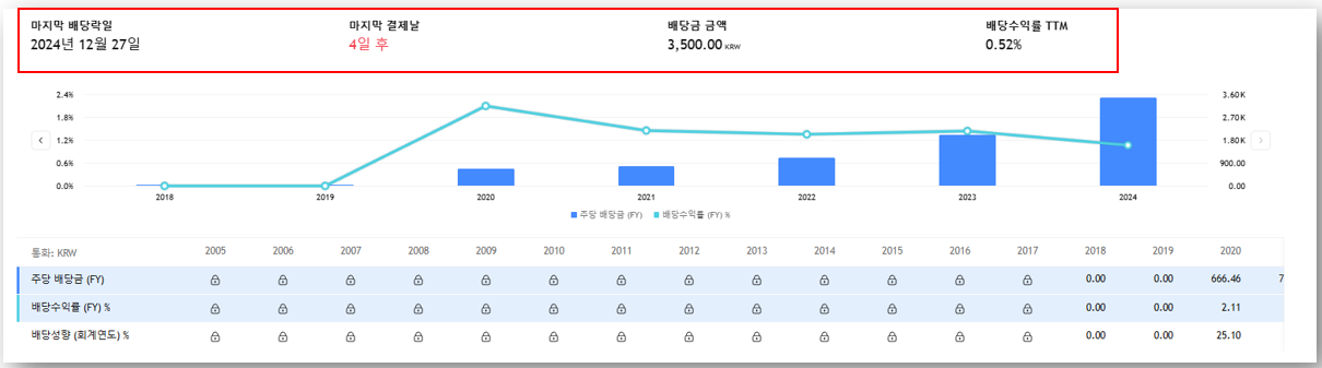 ✅ 매년 배당금은 증가 중이지만, 아직까지는 고배당주는 아니에요.