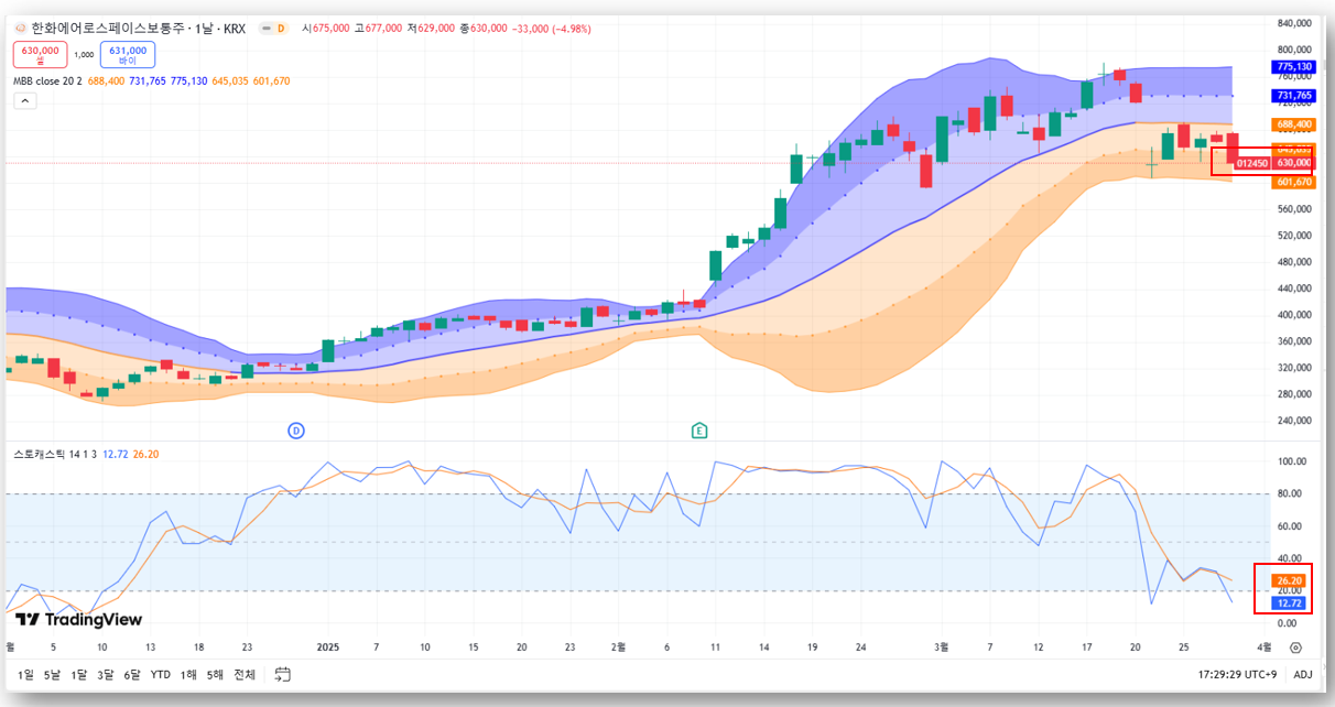 - 스토캐스틱 RSI: 과매도 진입 → 반등 기대감