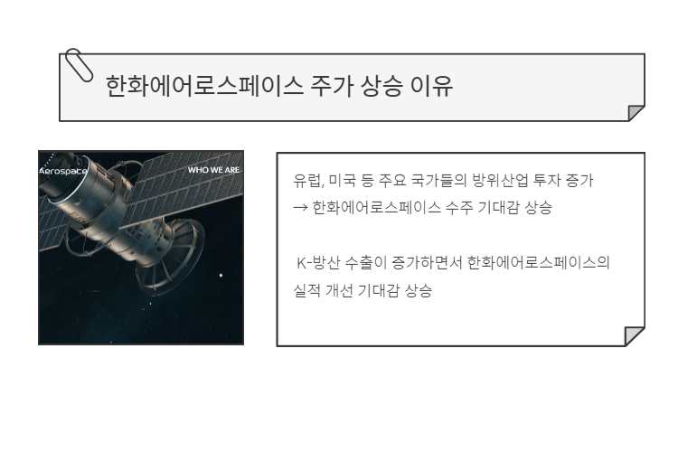 💡 유럽, 미국 등 주요 국가들의 방위산업 투자 증가 → 한화에어로스페이스 수주 기대감 상승