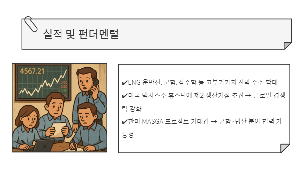 - 한미 MASGA 프로젝트 기대감 → 군함·방산 분야 협력 가능성