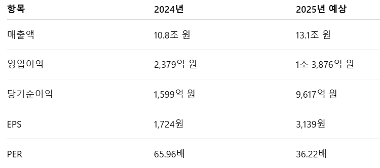2025년 실적 대폭 개선이 예상되며, EPS와 당기순이익의 급증은 밸류에이션 매력을 높이는 요인입니다.