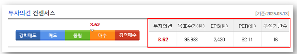 - 투자의견 평균: 3.62 (매수~강력매수)