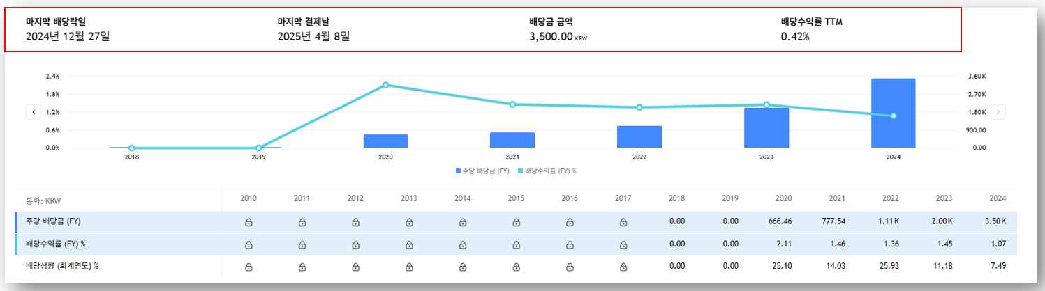 - 2024년 배당금: 1주당 3,500원
