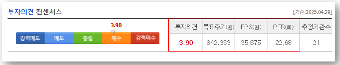 📈 2025년 매출과 영업이익 모두 대폭 성장할 것으로 전망되며, EPS 기준 주당 35,675원으로 추정되어 향후 주가 상승 여력이 매우 큽니다.