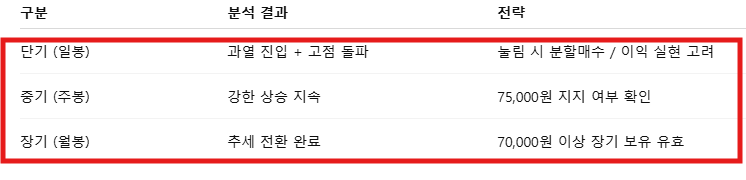 📌 해석: 장기 투자자도 긍정적인 시그널. 단, 일부 이익실현 매물 경계 필요.