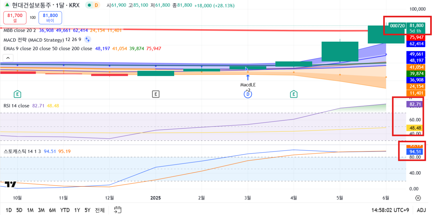 - RSI: 82.71 (장기 과열 진입)