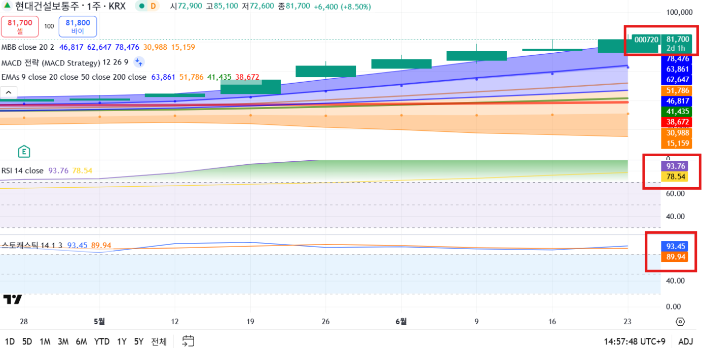 - RSI: 93.76 (강한 과열)