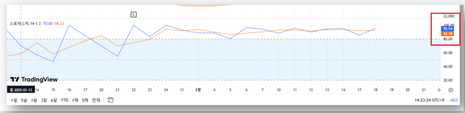 • 95.54 / 92.18로 과매수 구간에 진입 → 단기 조정 가능성 있음