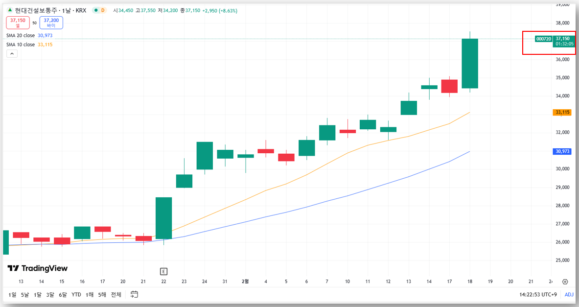 1. 현대건설 주가 흐름 분석