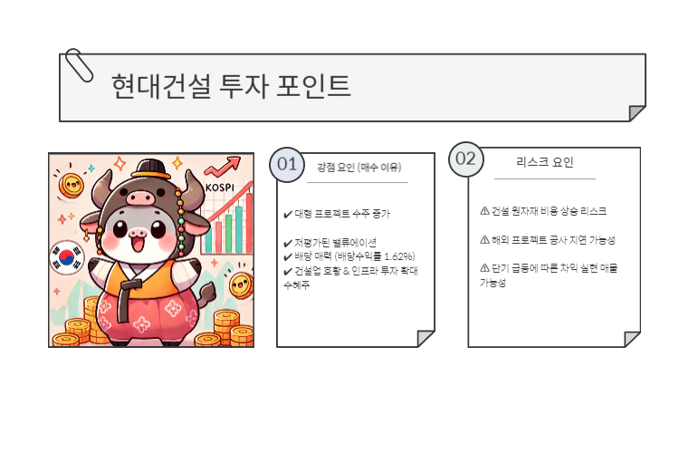 📌 장기 투자: 건설업 성장성과 배당 매력을 고려해 포트폴리오에 편입 추천
