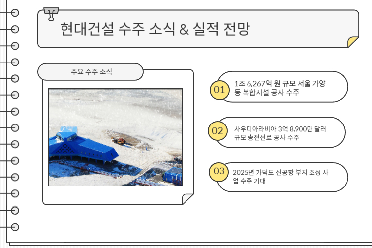 현대건설은 최근 대형 프로젝트 수주를 연달아 따내며 실적 개선 기대감을 높이고 있습니다.