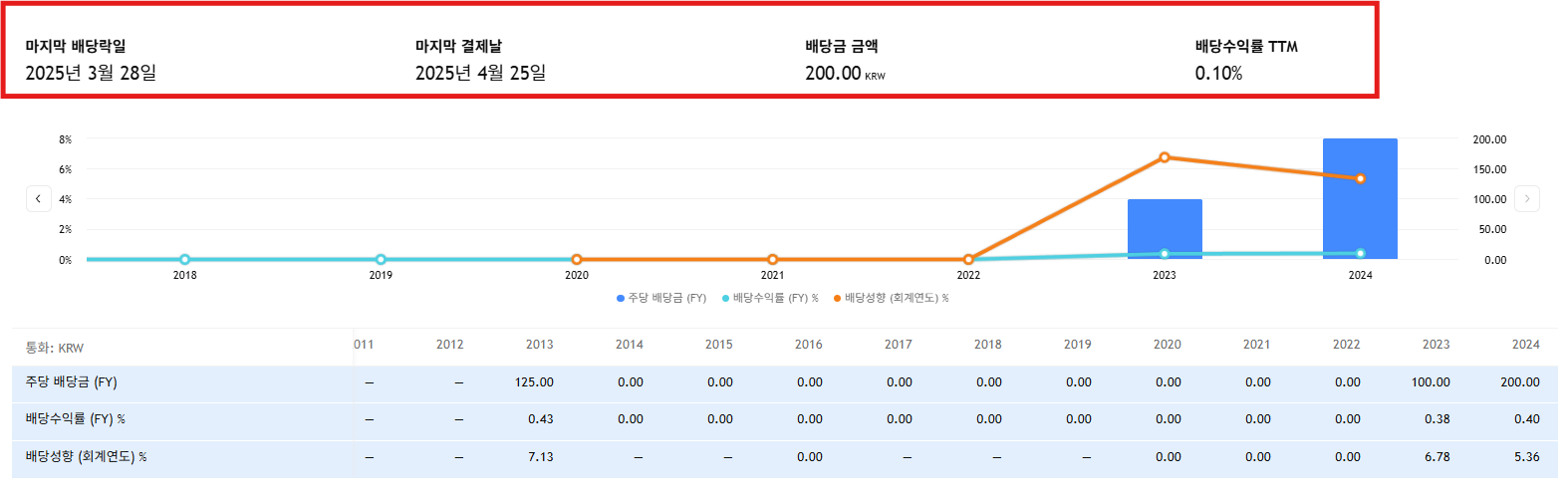 - 2024년 배당금: 200원