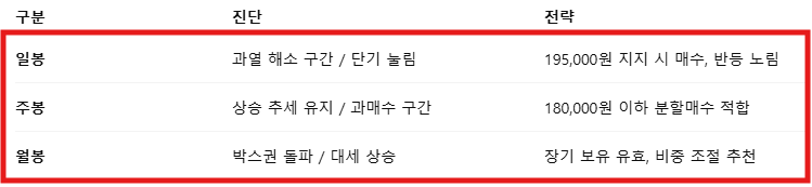 ✅ 보수적 접근: 195,000원 이하에서 분할매수 고려