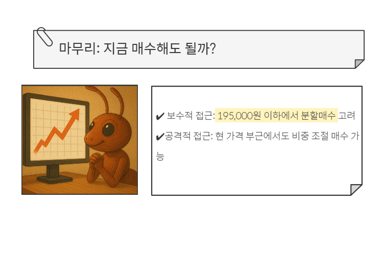 ✅ 보수적 접근: 195,000원 이하에서 분할매수 고려