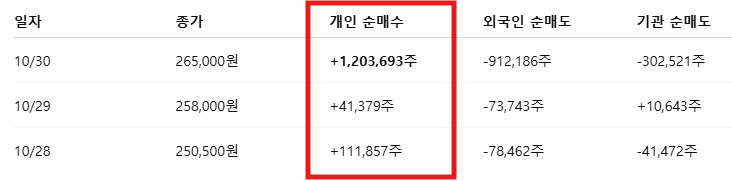 - 개인 순매수 집중