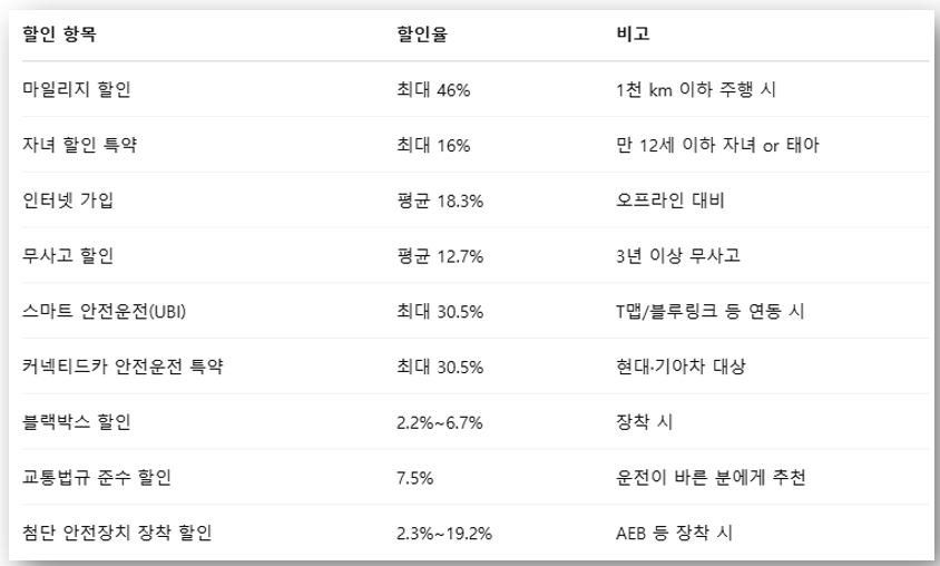 게다가, 안전운전 점수, 마일리지, 무사고 이력 등 다양한 할인 특약으로
