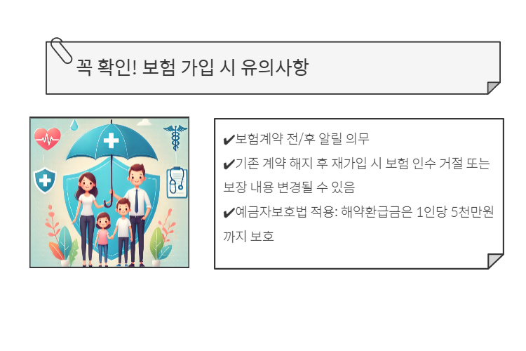 - 기존 계약 해지 후 재가입 시 보험 인수 거절 또는 보장 내용 변경될 수 있음