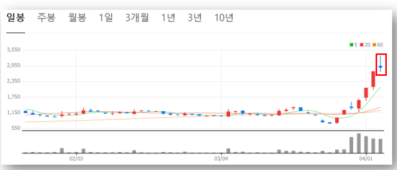 - 3월 중순까지만 해도 1,000원대 → 현재 2,850원