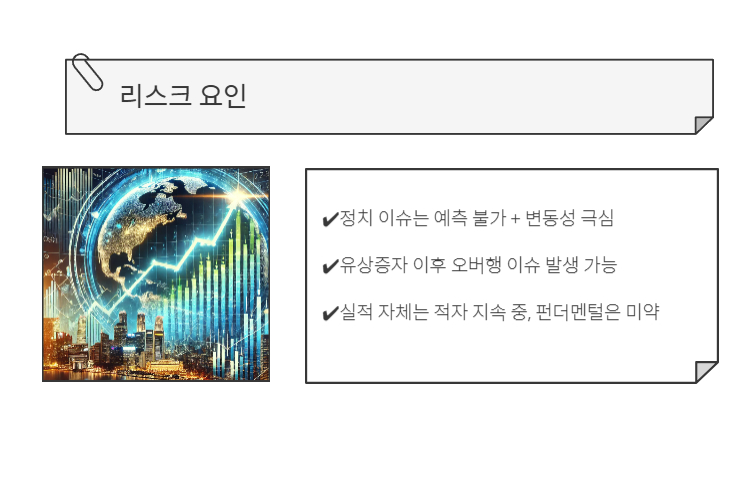 - 정치 이슈는 예측 불가 + 변동성 극심