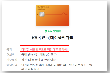💡 마트 & 주유소 혜택이 필요하다면? 👉 KB국민 굿데이올림카드