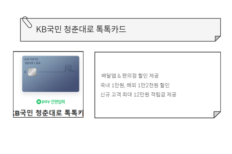 💡 배달음식 & 편의점 이용이 많다면? 👉 KB국민 청춘대로 톡톡카드
