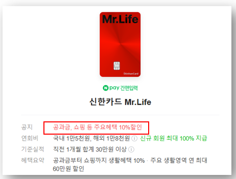 💡 공과금 & 대중교통 비용을 줄이고 싶다면? 👉 신한카드 Mr.Life