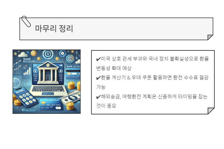 - 미국 상호 관세 부과와 국내 정치 불확실성으로 환율 변동성 확대 예상