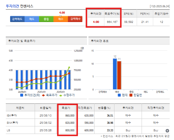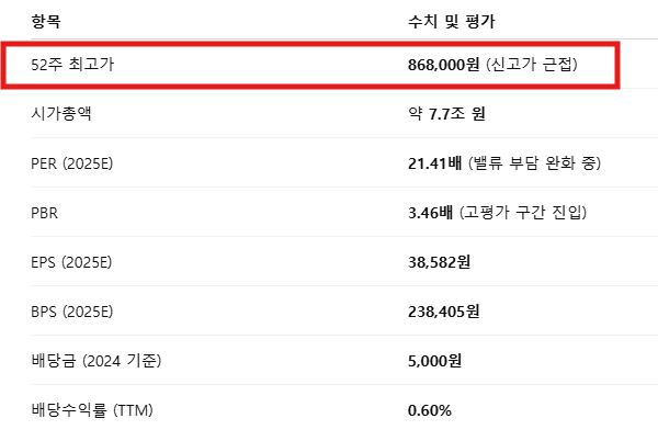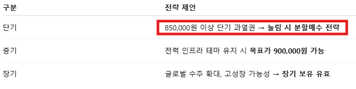 - 현재가(855,000원) 대비 상승 여력 제한적 → 기대보다 선반영된 상태