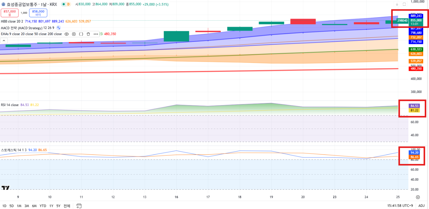 - MACD: 골든크로스 지속, 강한 상승 모멘텀 유지