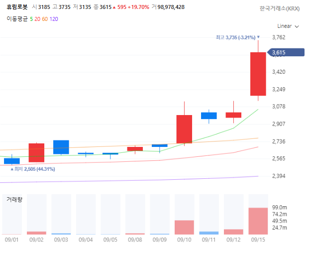휴림로봇 주가 급등 현황